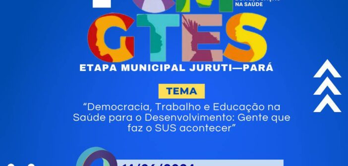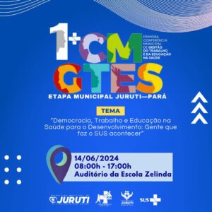 A Prefeitura de Juruti, por meio da Secretaria Municipal de Saúde e o Conselho Municipal de Saúde, irão realizar nesta sexta-feira, dia 14 de Junho, a 1ª Conferência Municipal da Gestão do Trabalho e da Educação na Saúde. No horário de 8h às 17h, no Auditório da Escola Municipal Zelinda Guimarães.