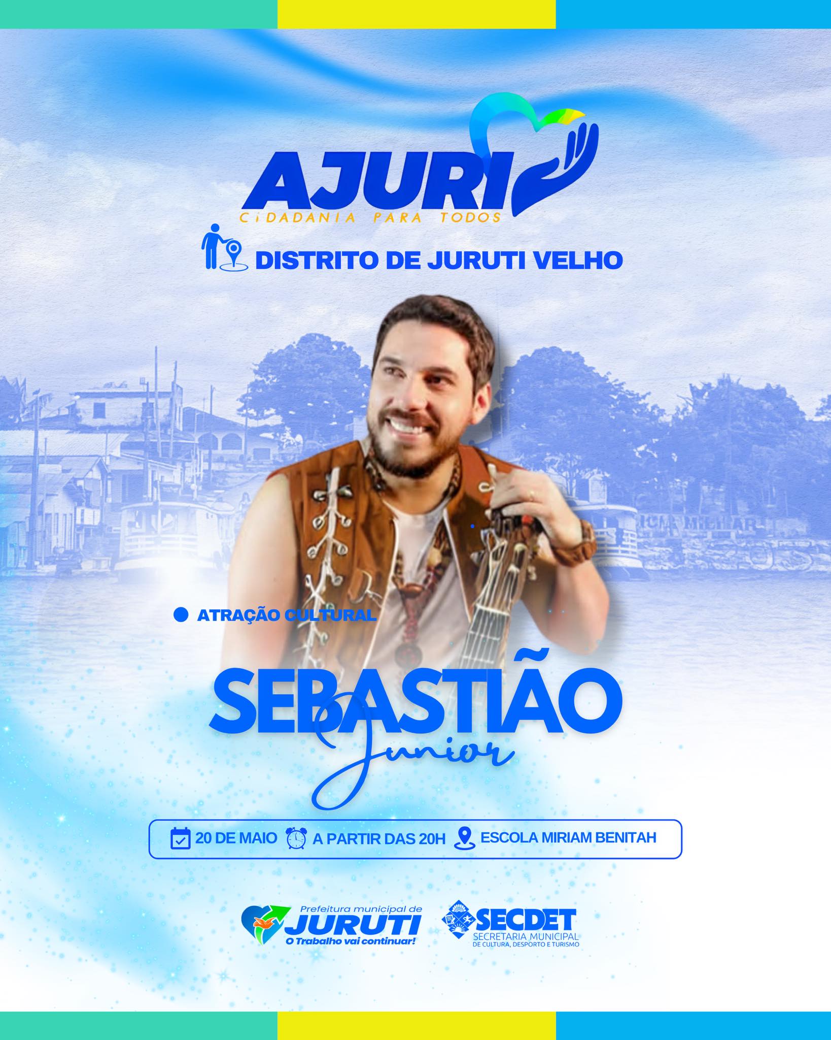 Além dos atendimentos, o Projeto Ajuri também vai celebrar a cultura local e fortalecer o sentimento de pertencimento, com apresentações artísticas, atividades culturais e um momento especial: o show do cantor Sebastião Júnior, em comemoração ao aniversário da Escola Miriam Benitah.