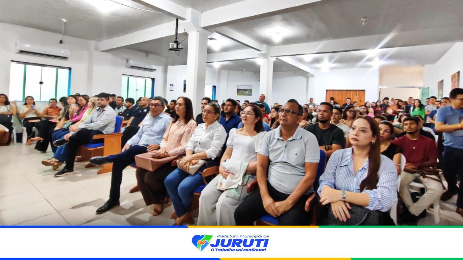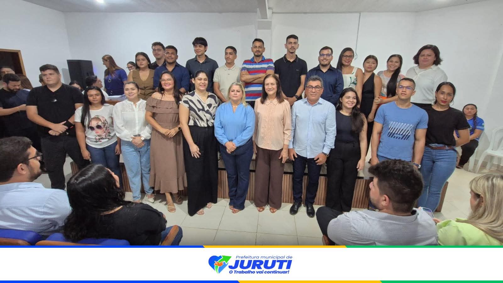 A solenidade ocorreu no auditório do Palácio Municipal Zenilda Barroso Guidão, onde os novos servidores realizaram a assinatura do termo de posse, formalizando o ingresso no serviço público.