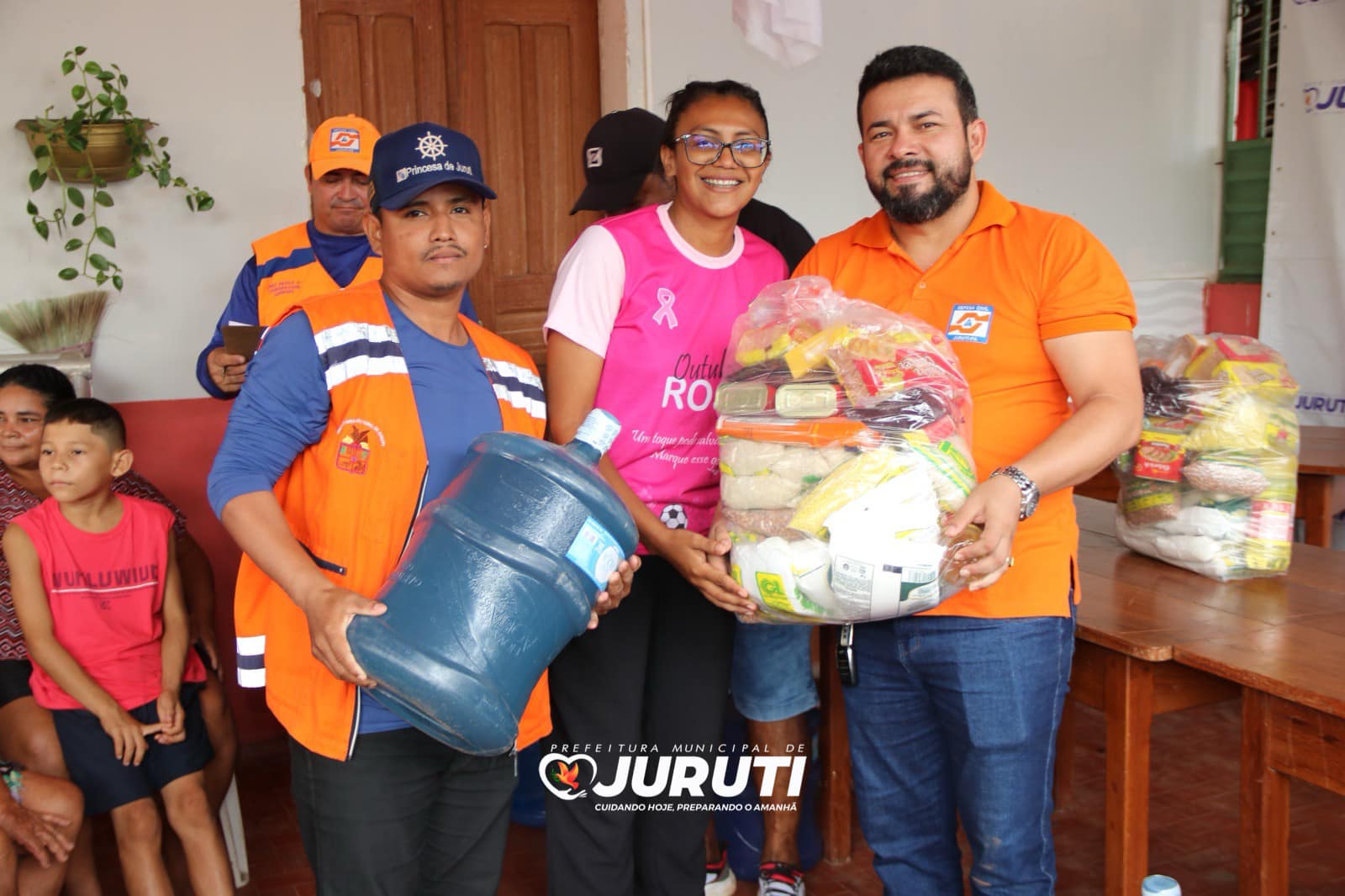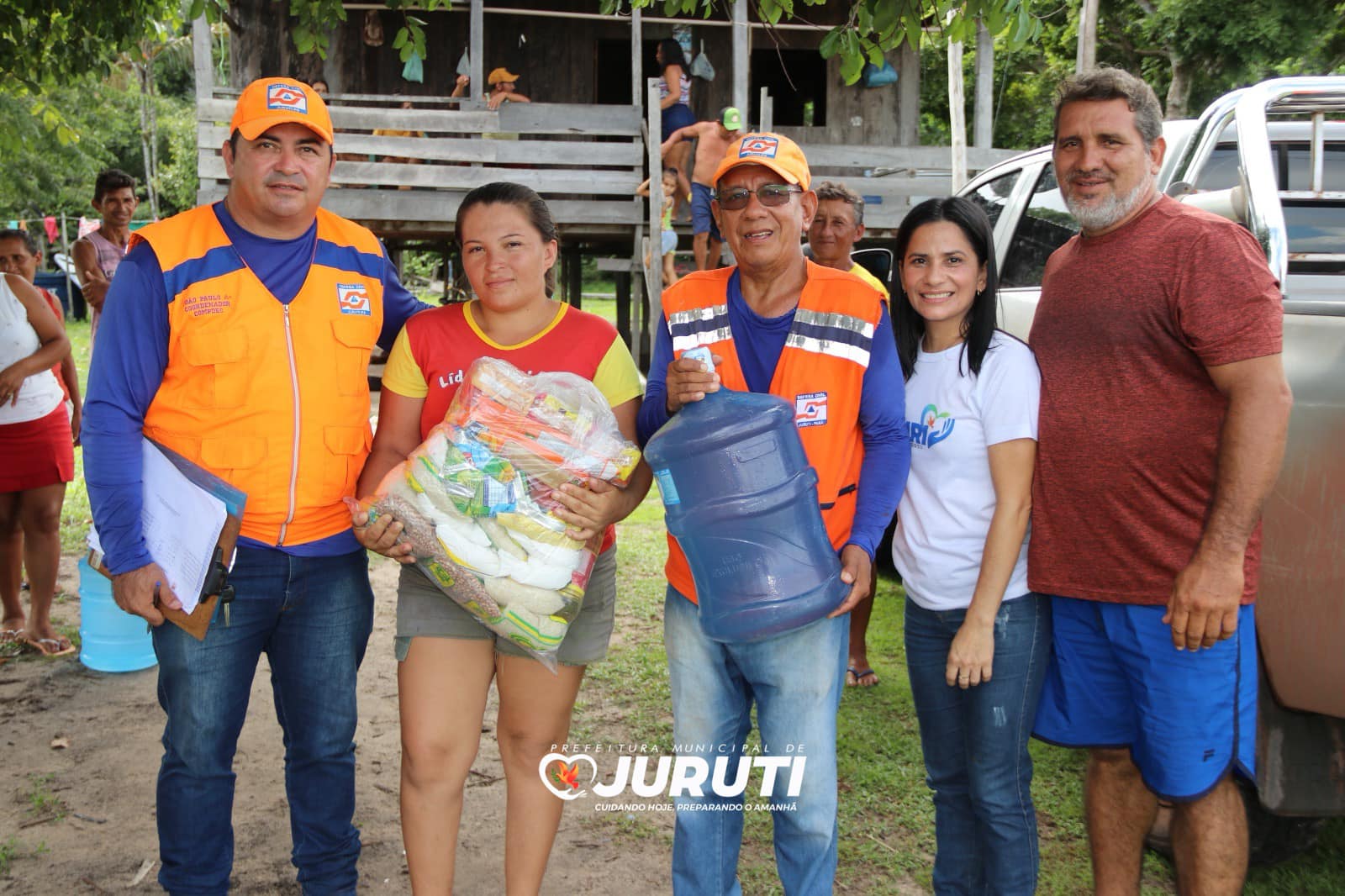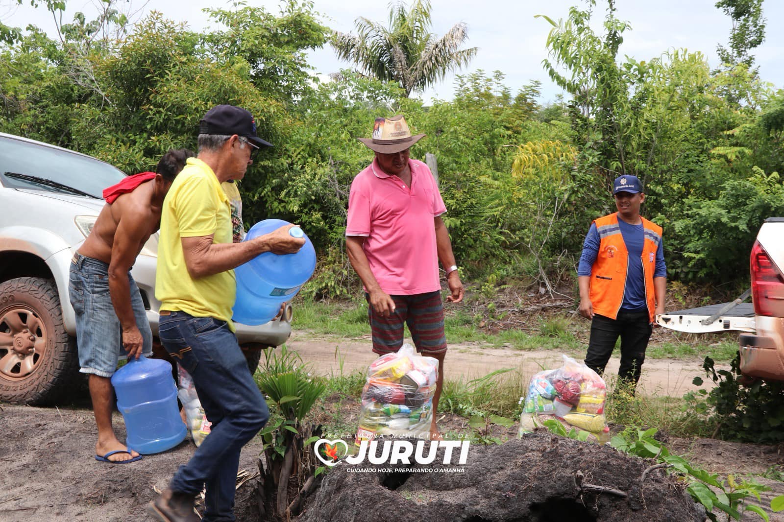 Nesta quarta-feira (24), o Secretário Especial de Governo, Alex Guedes e Coordenador de Proteção e Defesa Civil, João Paulo Vieira e equipe estiveram na região da Tabatinga, entregando as ajudas humanitárias e água mineral para 120 famílias afetadas pela estiagem das comunidades Santo Antônio Tatu, Tabatinga e Arimateua.