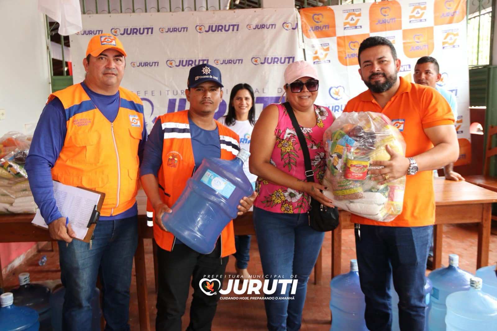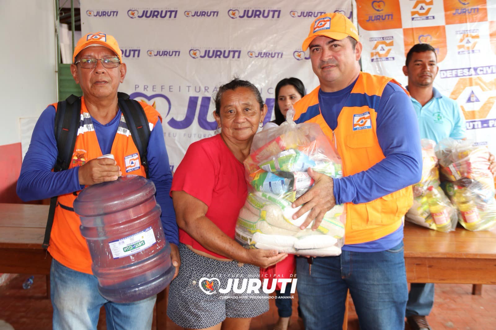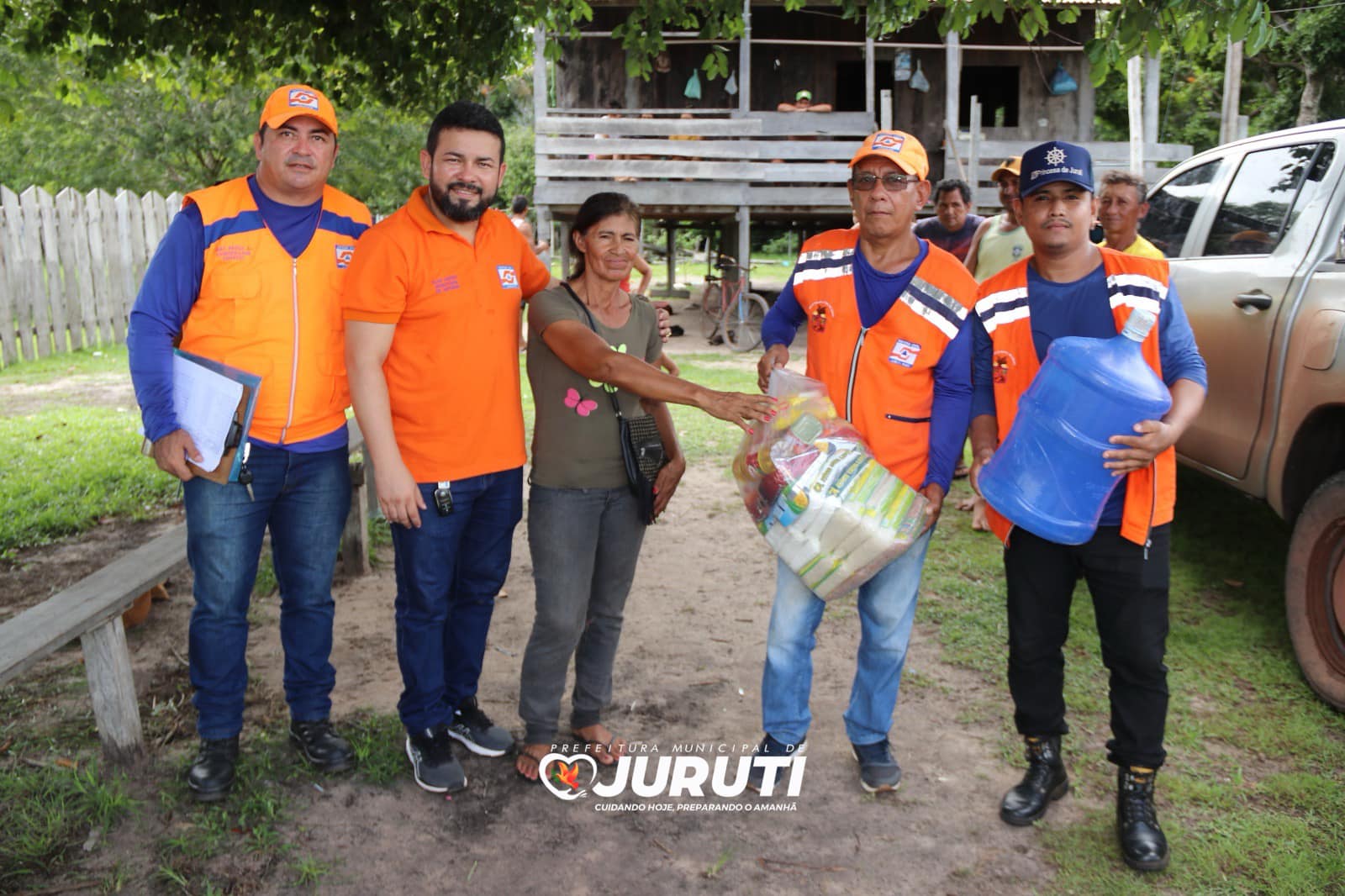 Nesta quarta-feira (24), o Secretário Especial de Governo, Alex Guedes e Coordenador de Proteção e Defesa Civil, João Paulo Vieira e equipe estiveram na região da Tabatinga, entregando as ajudas humanitárias e água mineral para 120 famílias afetadas pela estiagem das comunidades Santo Antônio Tatu, Tabatinga e Arimateua.