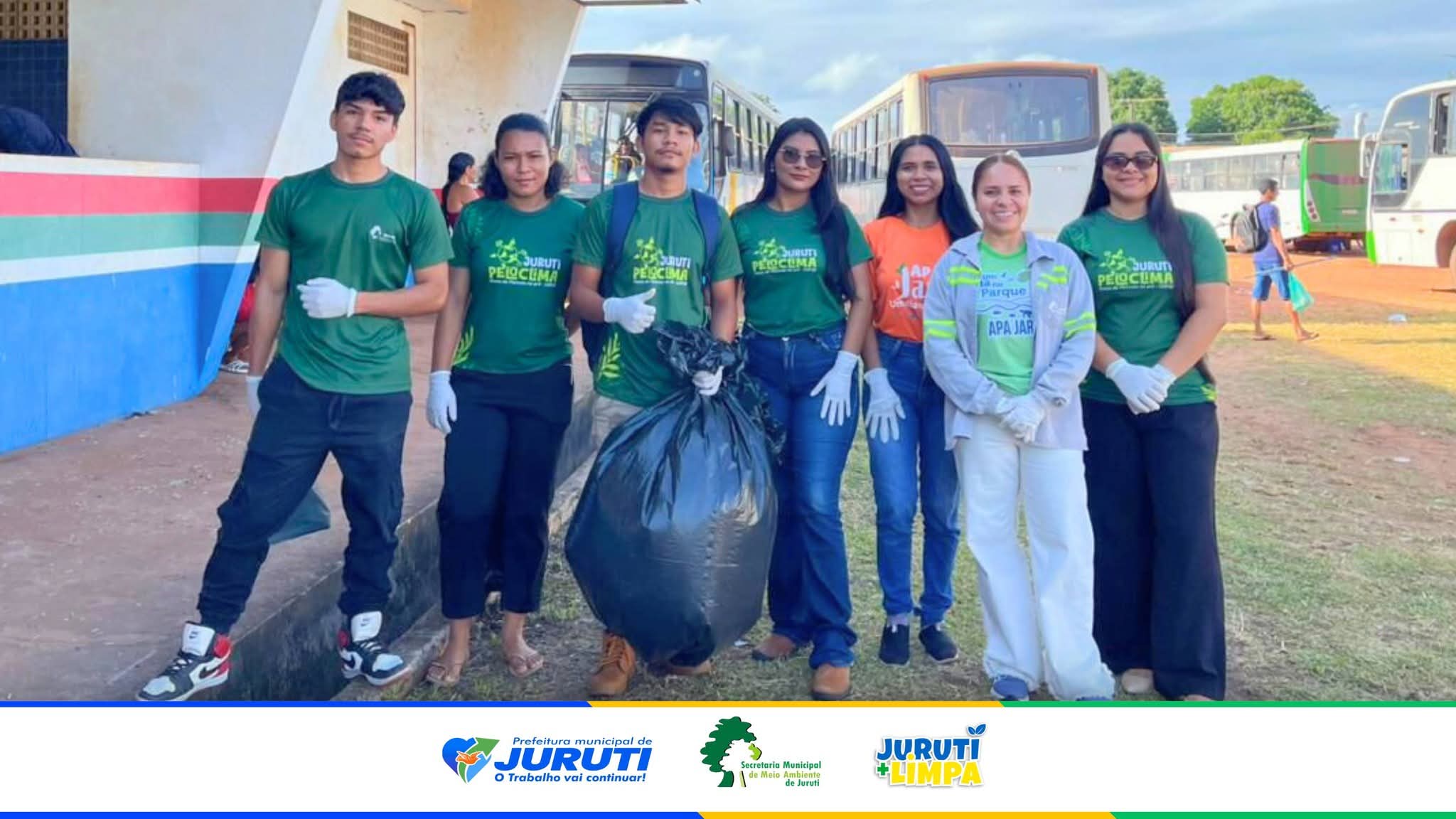 A Prefeitura Municipal de Juruti, por meio da Coordenação de Educação Ambiental da Secretaria Municipal de Meio Ambiente, realizou na sexta-feira, 16 de janeiro, mais um mutirão de limpeza, desta vez no Terminal de Ônibus. A ação integra a campanha Juruti Mais Limpa e contou com o apoio da Associação de Catadores e Catadoras de Juruti (CATAJUR).