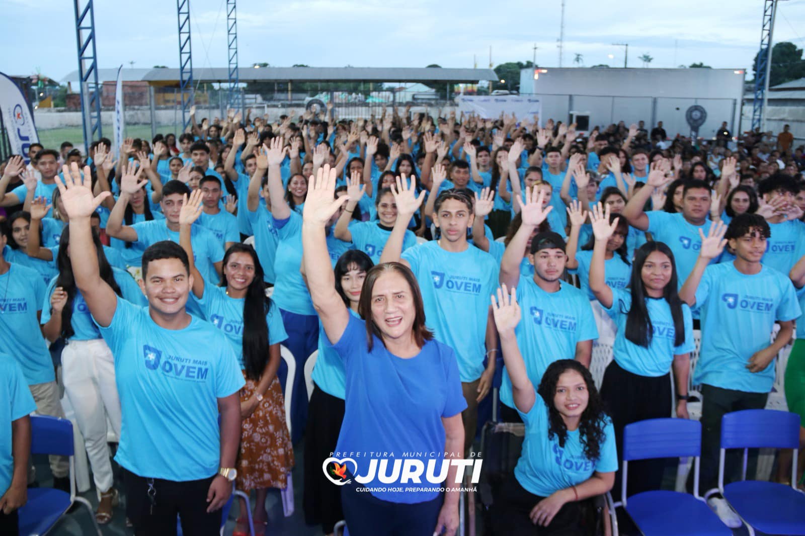 Na última quarta-feira (28), a Prefeitura de Juruti realizou o acolhimento dos 300 jovens que foram aprovados no Processo Juruti Mais Jovem. A cerimônia aconteceu na quadra da Escola Américo Pereira Lima.
