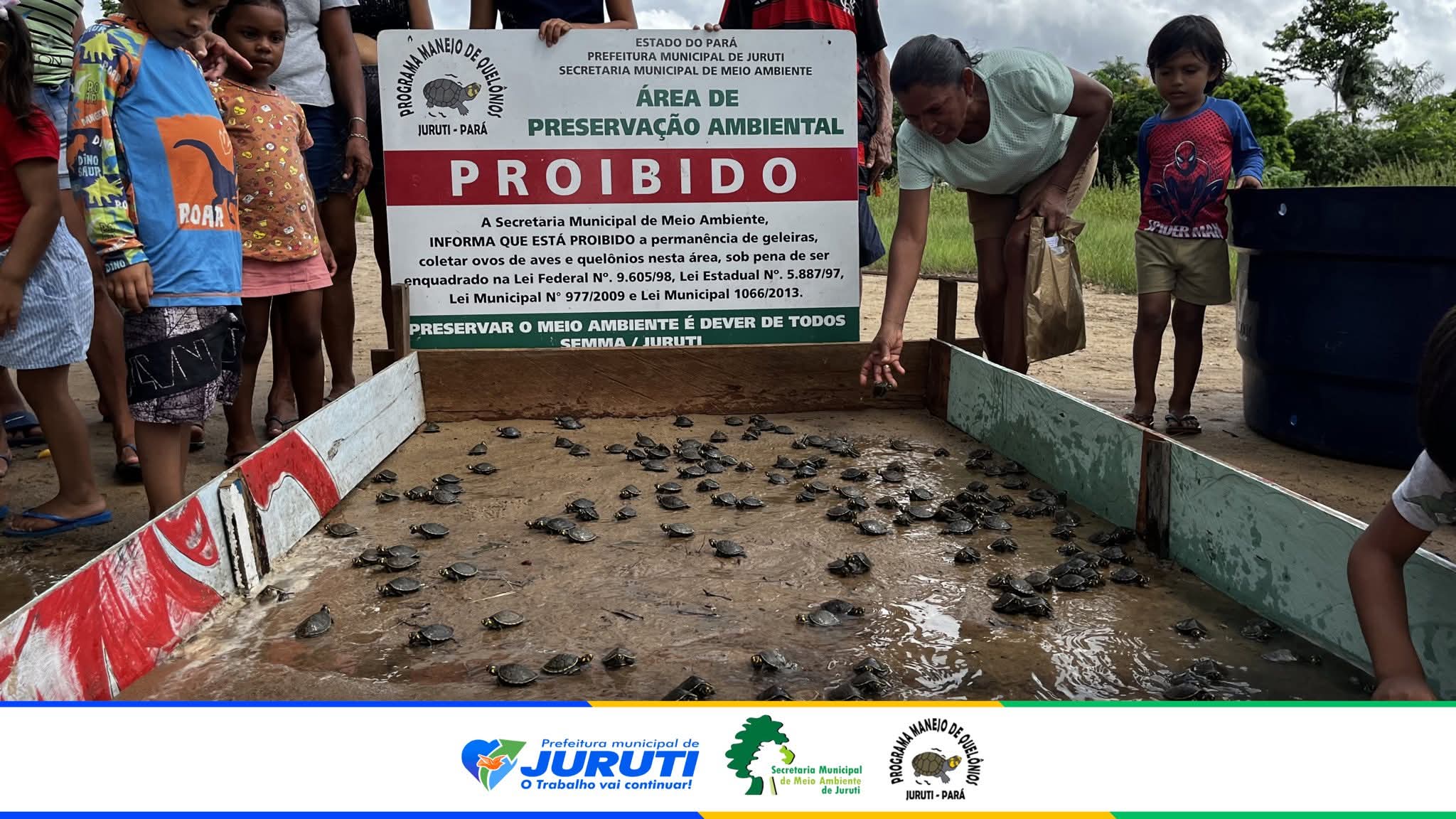 No último sábado (7), a Prefeitura Municipal de Juruti, por meio da Secretaria Municipal de Meio Ambiente (SEMMA) e da Coordenação do Programa de Manejo de Quelônios de Juruti (PMQJ), realizou uma ação de soltura de quelônios nas comunidades Nova Macaiani e Nova Conquista da Ingrácia, localizadas na região do Juruti Velho.