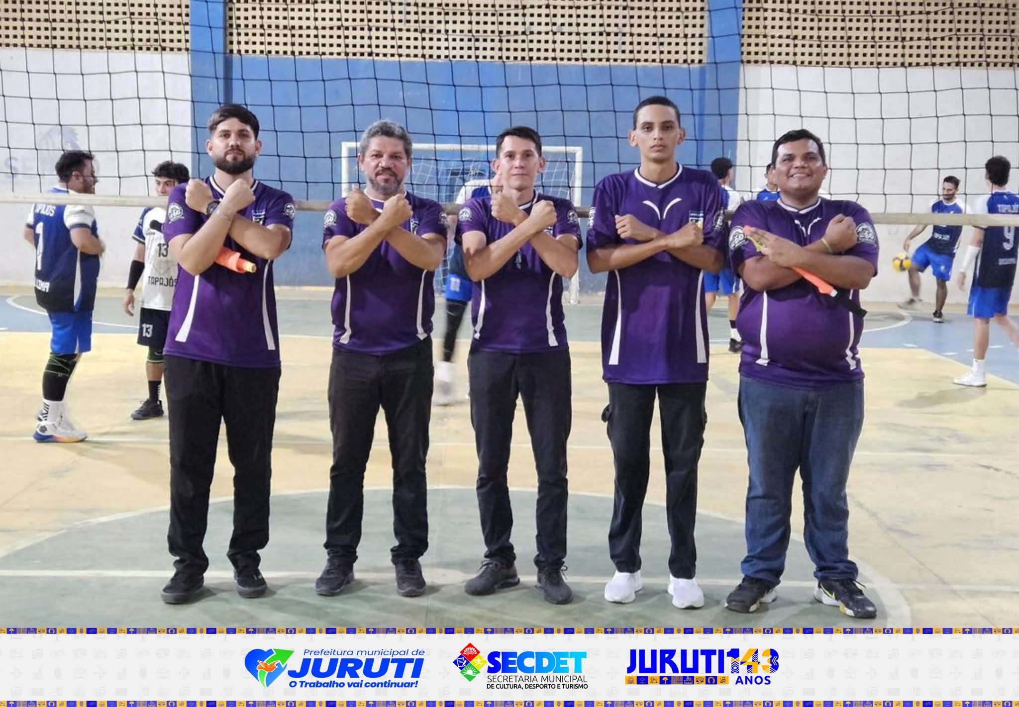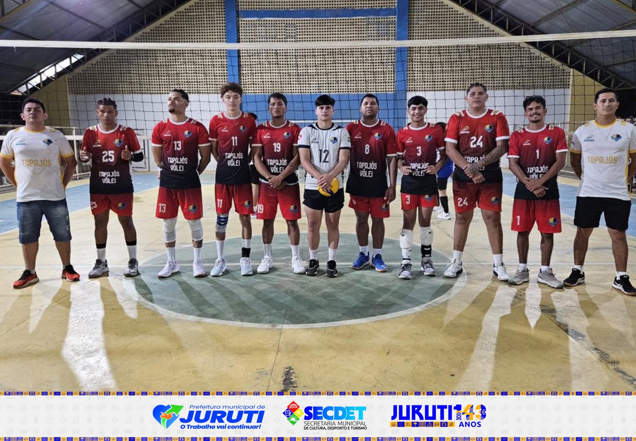 No sábado, 4 de abril, a quadra do Colégio Maria Lúcia recebeu as disputas de voleibol masculino, reunindo equipes em mais uma atividade dos 143 anos de Juruti.